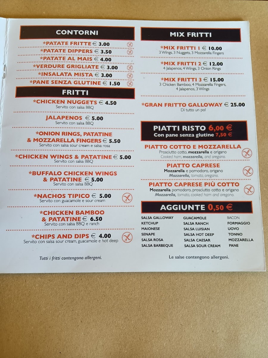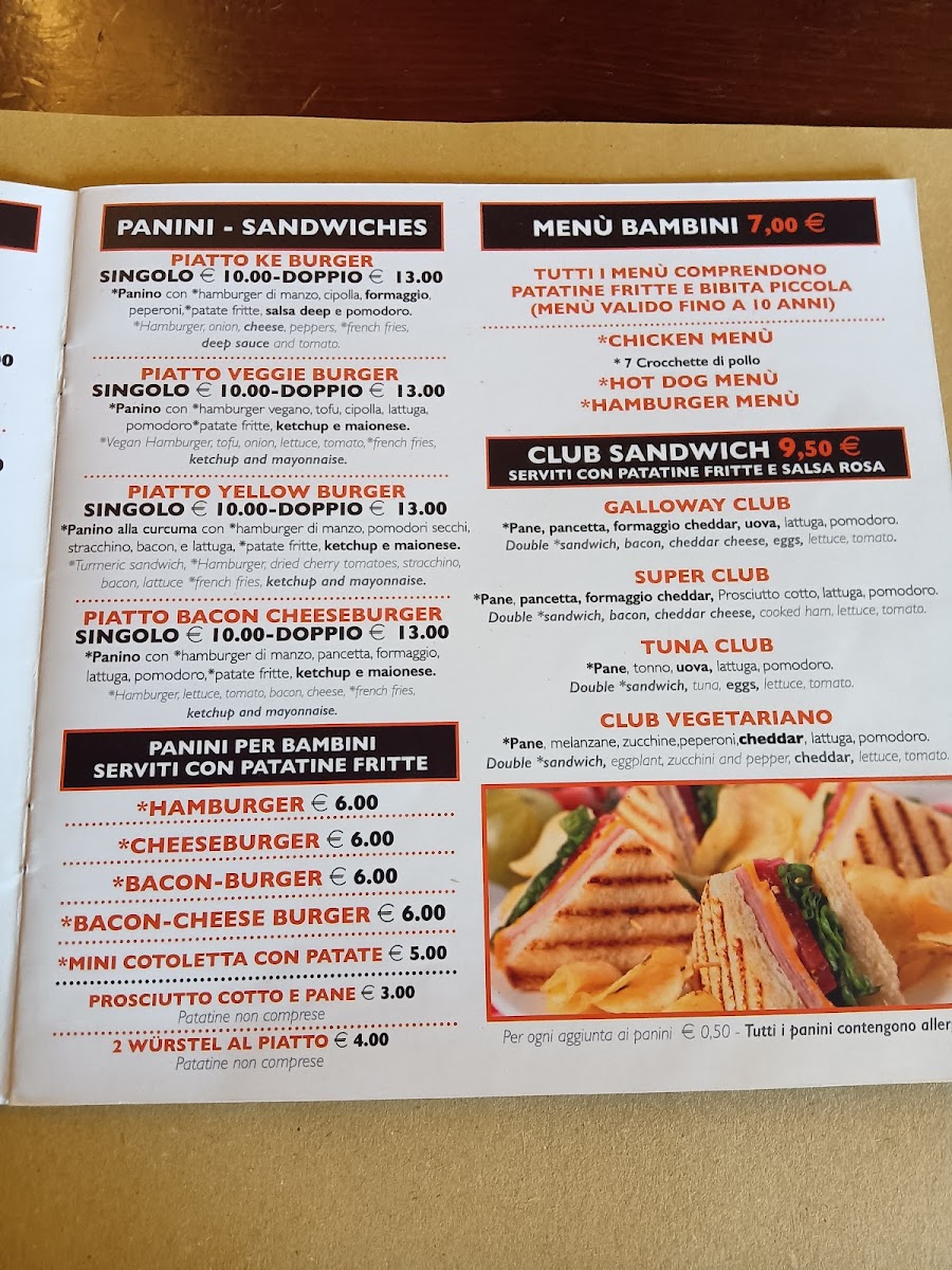 The menu features standout dishes such as the Galletto alla brace, marinated and grilled chicken served alongside a choice of crispy fries, grilled vegetables, or fresh mixed salad, all for just €11.00. Hamburger lovers will relish the various options available, including the classic cheeseburger, bacon cheeseburger, and the innovative chickenburger, each paired with the same tempting fries for only €10.00.